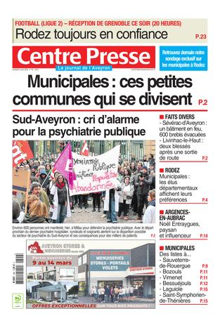 RÉDACTION 8-10, av. Victor-Hugo 12021 Rodez Cedex 9 05 81 19 12 00 - Fax : 05 81 19 12 01 redaction@centrepresse.com Abonnement, livraison à domicile, accès numérique, contactez le service client...