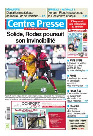 RÉDACTION 8-10, av. Victor-Hugo 12021 Rodez Cedex 9 05 81 19 12 00 - Fax : 05 81 19 12 01 redaction@centrepresse.com Abonnement, livraison à domicile, accès numérique, contactez le service client...