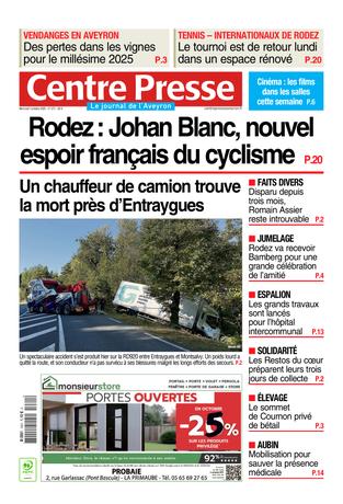 RÉDACTION 8-10, av. Victor-Hugo 12021 Rodez Cedex 9 05 81 19 12 00 - Fax : 05 81 19 12 01 redaction@centrepresse.com Abonnement, livraison à domicile, accès numérique, contactez le service client...