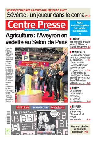 RÉDACTION 8-10, av. Victor-Hugo 12021 Rodez Cedex 9 05 81 19 12 00 - Fax : 05 81 19 12 01 redaction@centrepresse.com Abonnement, livraison à domicile, accès numérique, contactez le service client...