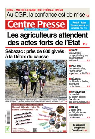 RÉDACTION 8-10, av. Victor-Hugo 12021 Rodez Cedex 9 05 81 19 12 00 - Fax : 05 81 19 12 01 redaction@centrepresse.com Abonnement, livraison à domicile, accès numérique, contactez le service client...